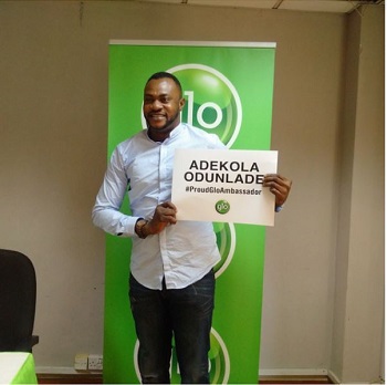 The actor disclosed this on his social network by posting the photo below showing him behind a GLO backdrop while holding on to a sign that reads, ‘Adekola Odunlade #ProudGloAmbassador.